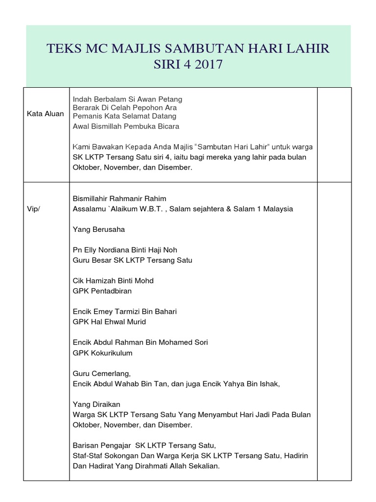 Teks Mc Majlis Sambutan Hari Lahir Pdf